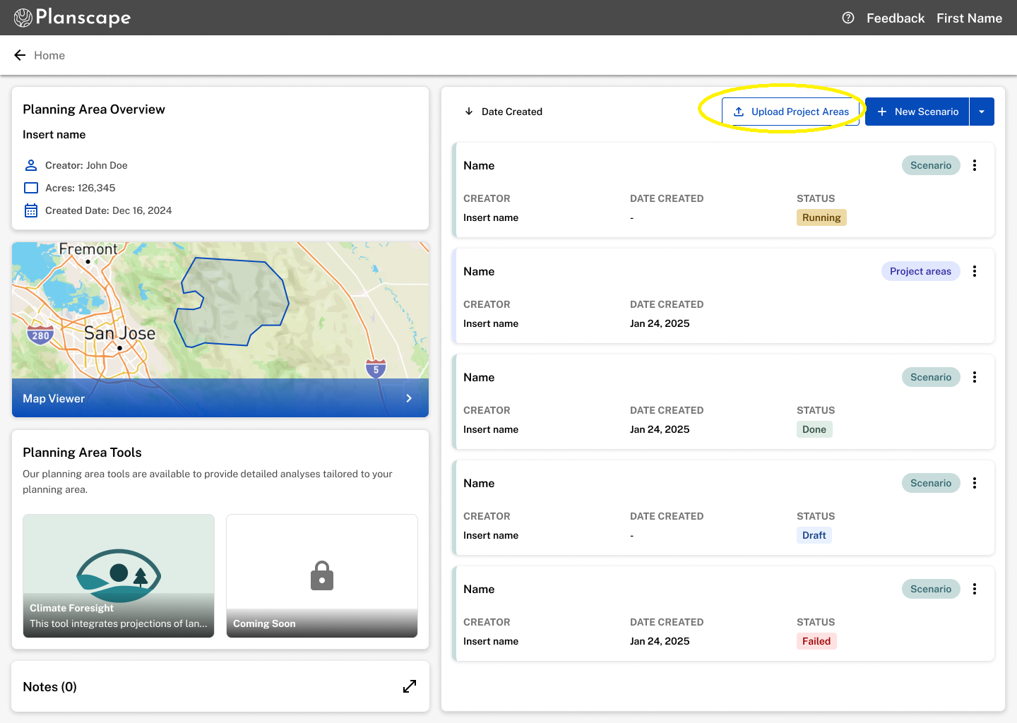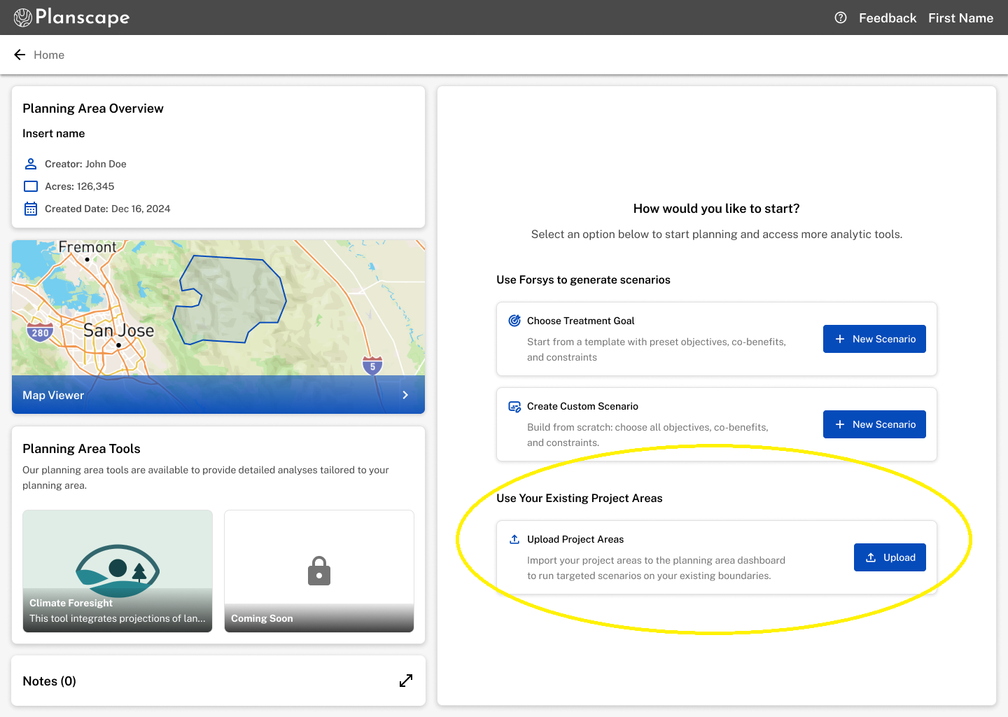 Upload your previously defined project areas that are within the planning area boudary.