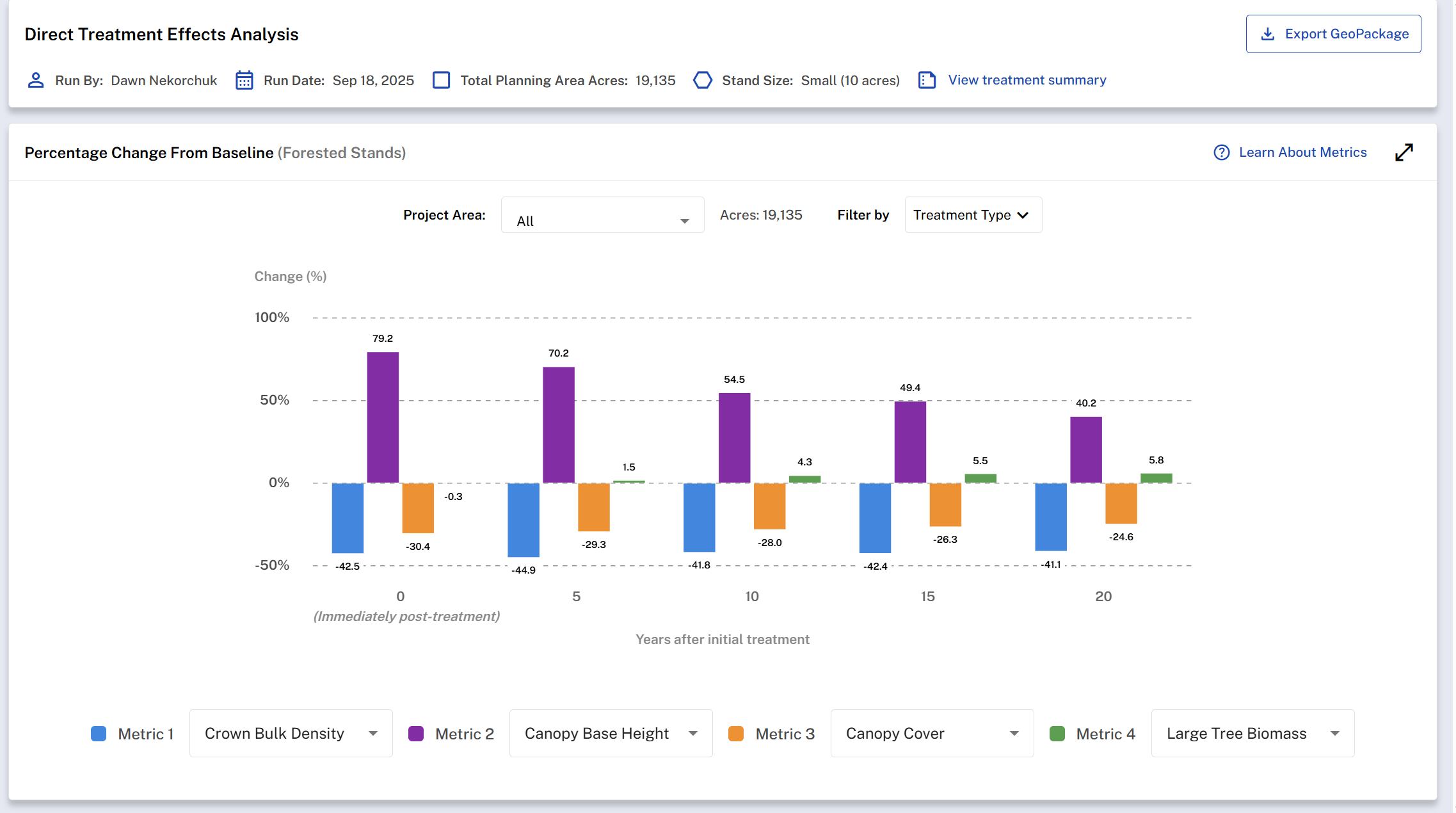 Treatment Type Filtering: Filter by treatment type, displaying results only for stands where the selected treatment(s) were applied.