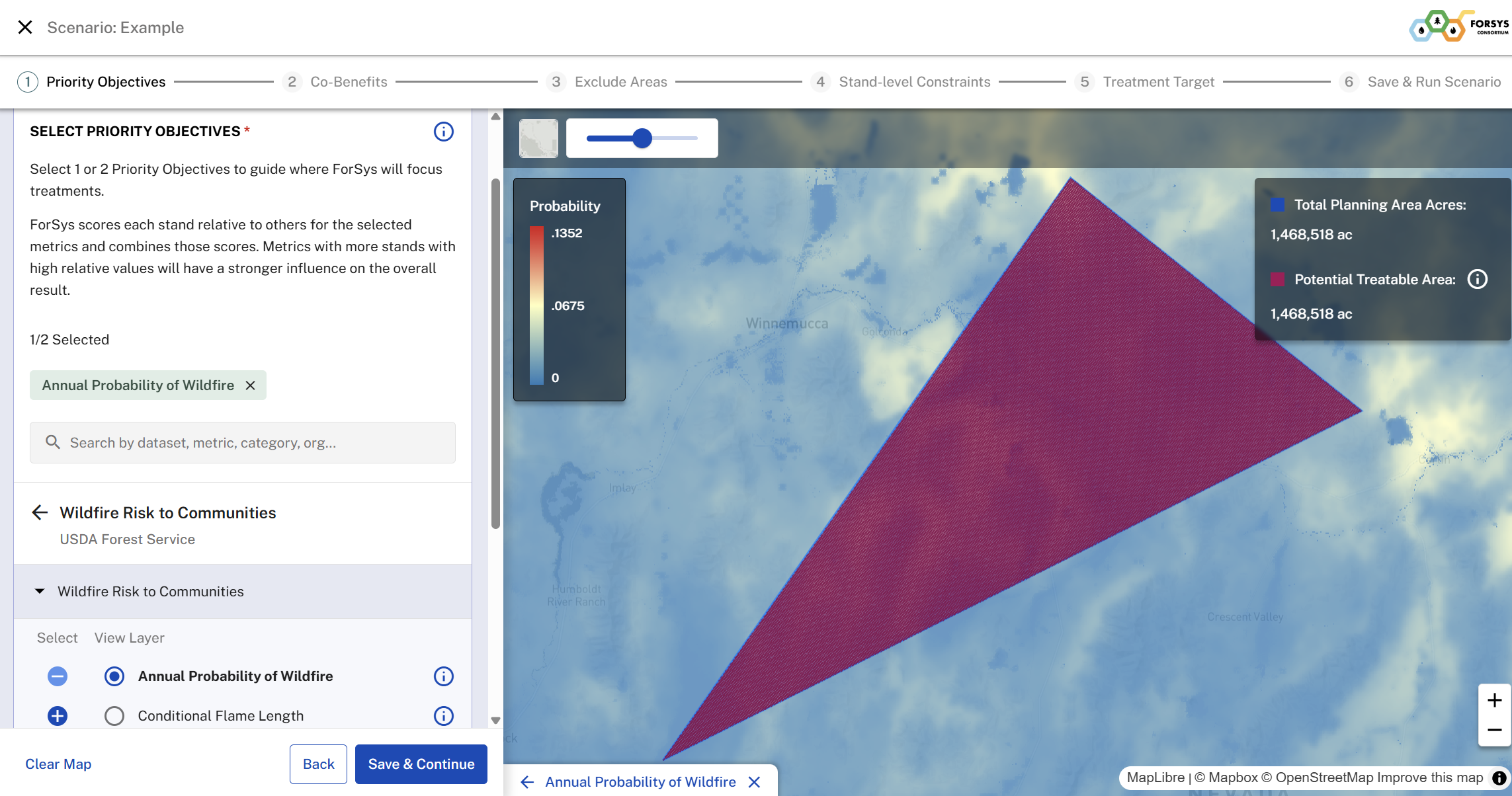 Select One or Two Priority Objectives: These are the main outcomes you want ForSys to focus on when identifying areas for treatment — like source exposure, wildfire hazard potential, or total live tree carbon.![]()